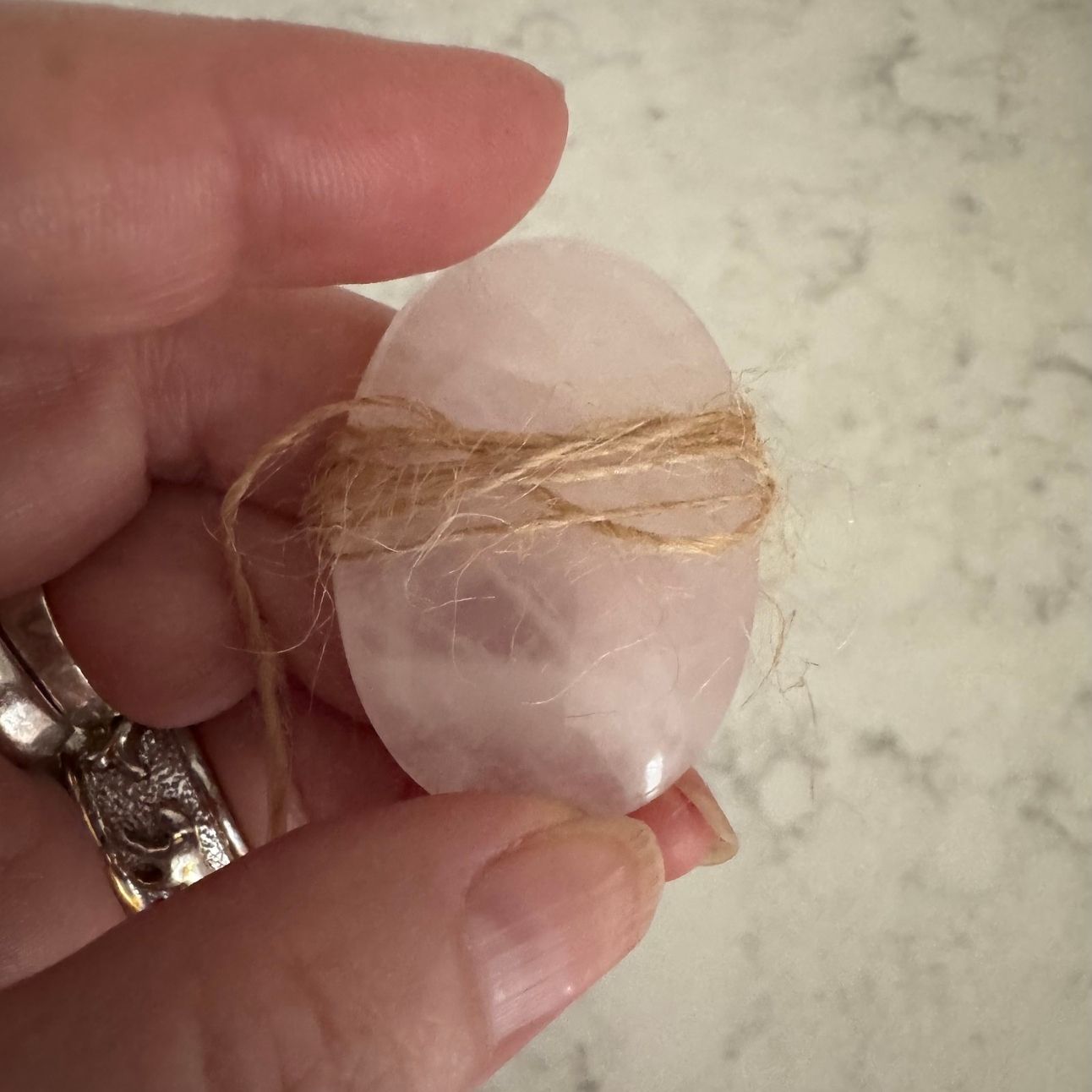 Jeannie Edmunds, whose passion far exceeds her artistic talent, wrapped her favorite rose quartz “worry” stone. It has an indentation for the thumb but now that it’s wrapped, she can’t rub it any more…so no more worrying! As if!
