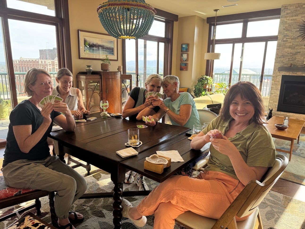 This week Jeannie Ralston went to the first meeting of a new S&M club in Asheville. Ha ha. S&M in this context stands for Spite & Malice—a card game. Six Asheville gals were on last month’s beach retreat in Troncones, Mexico, where almost everyone on the trip got addicted to the card game. So we’re continuing the fun here at home and planning our next game night the second Friday in May.