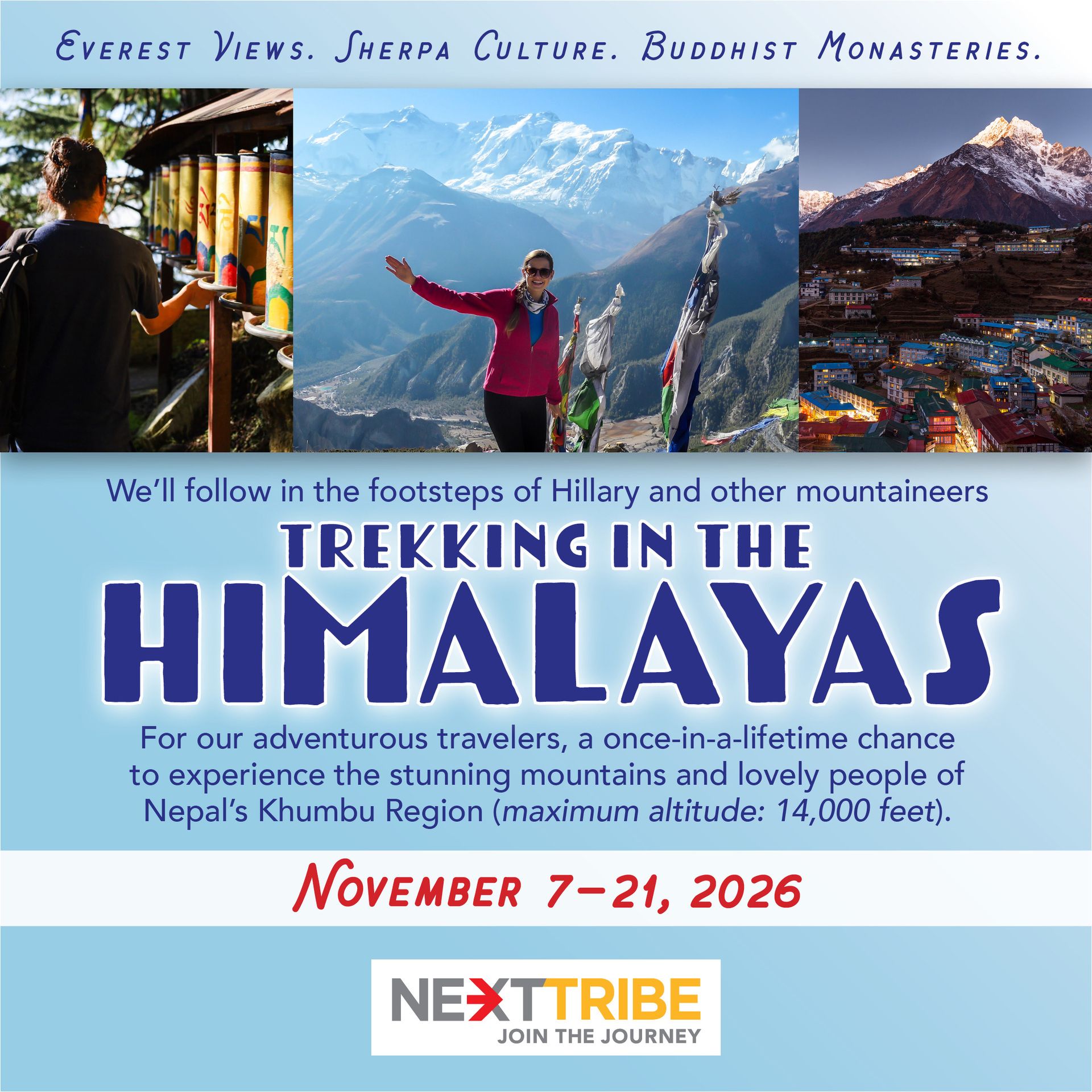 See Mt. Everest (from afar, we don’t go that high)