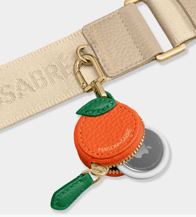 Jeannie Ralston says, “Almost all of us use airtags to keep track of our stuff on the road. But how about going next level and putting your little airtag in something adorable. Crafted using upcycled offcuts from full-grain leather, the Fruit Charm securely attaches to an infinity of accessories including handbags, garment tags and keys. Designed in five limited edition seasonal fruits, it safeguards the Apple AirTag most deliciously.”