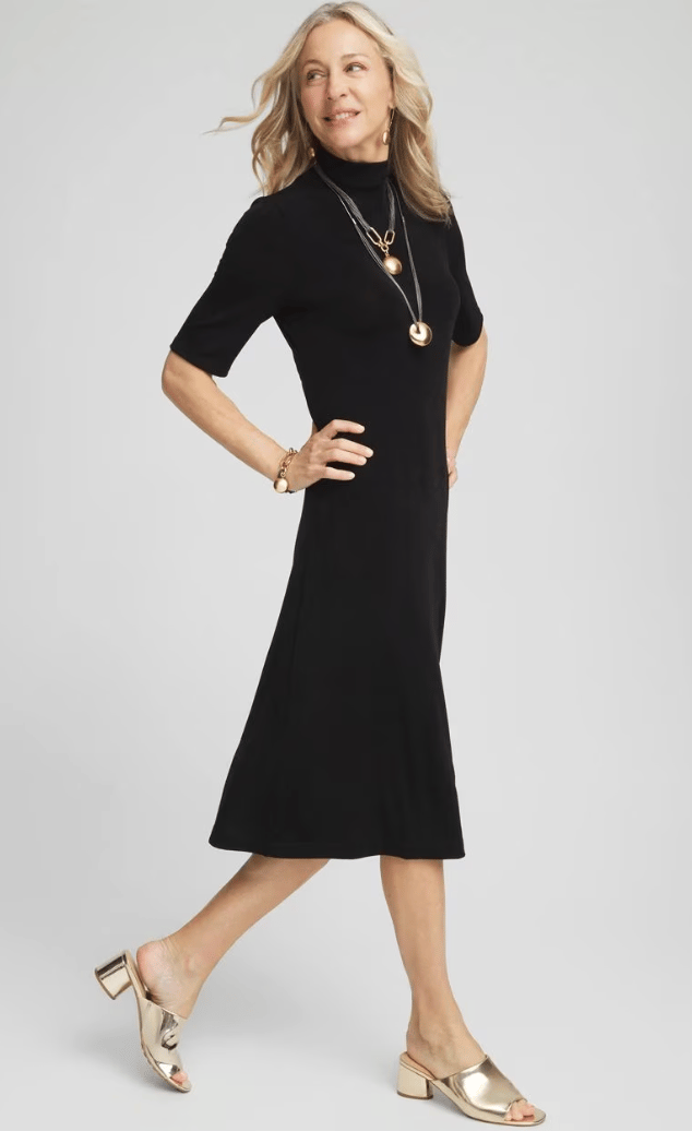 Jeannie Ralston says, “Packing experts are always talking about day-to-night dresses and the like, but it’s not always easy to spot one when you see it. To me, this is the ideal kind of dress that can be worn many times on a trip, in many different situations. It’s a blank canvas. Dress it down or dress it up. Easy and comfortable. I found this on the Chico website while creating a packing list for San Miguel de Allende in Mexico and wanted to share it with everyone. Great price too.”