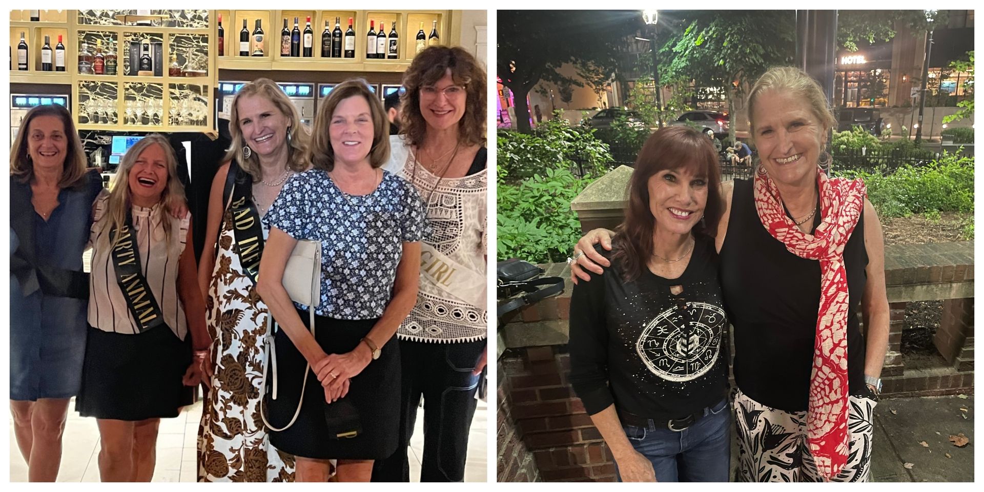 Left: College pals united for birthday weekend at North Myrtle Beach. Right: Jeannie with Teri Doss, visiting Asheville from Arizona.
