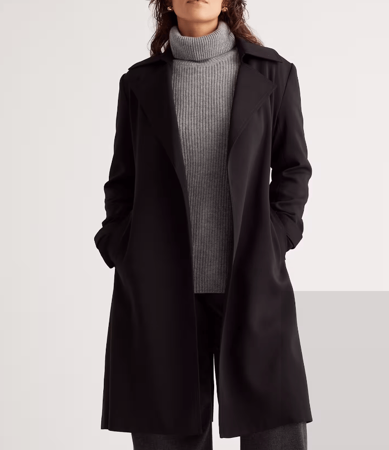 Jeannie Ralston says, “I once had the perfect travel coat--light crepe with a hood and lots of pockets from Athleta. I loaned it to someone and never got it back. I grieve it still and have been searching for something like it for years. This trench is the closest thing yet--stretchy, comfy and just warm enough. It can be worn over 3 seasons--add a wrap in winter. I also like the closure. I hate double-breasted trench coats because they're hard to wear open. This looks fabulous and insouciant open or closed.”