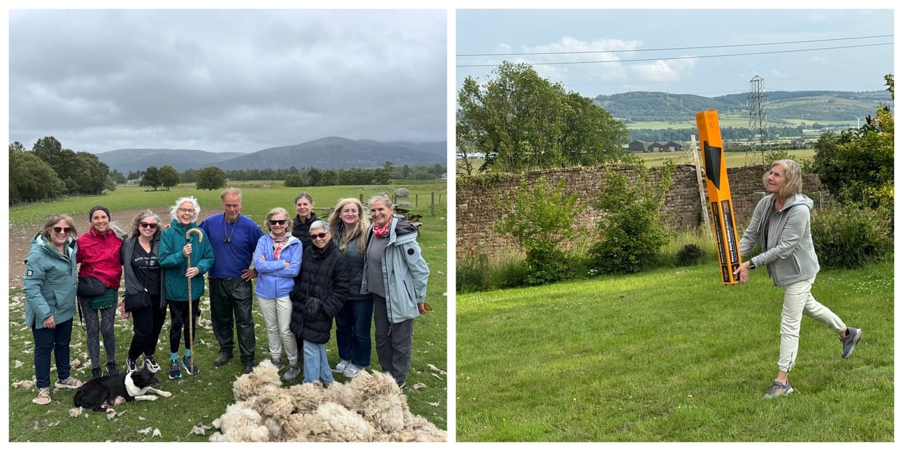 Our perfect last day in Scotland—at a sheepdog demonstration with a passionate farmer and a traveler participating in a mock Highland Games. After a Scottish friend welcomed us to her home and fed us, she set up events so that we could get the feel of the authentic ones. Here, we substituted a mailing tube for the log in the traditional log throw. It was a hoot!