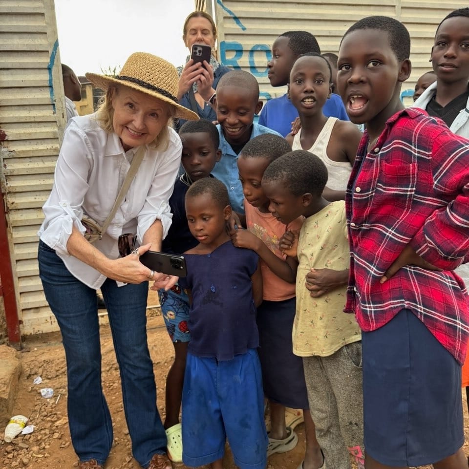Jeanne Edmunds visiting the Roots Foundation in Kigali, where they develop the life skills of street children to get them back in school. They also have a program for women where they teach them sewing and other skills so they can buy their own machines and start a business.