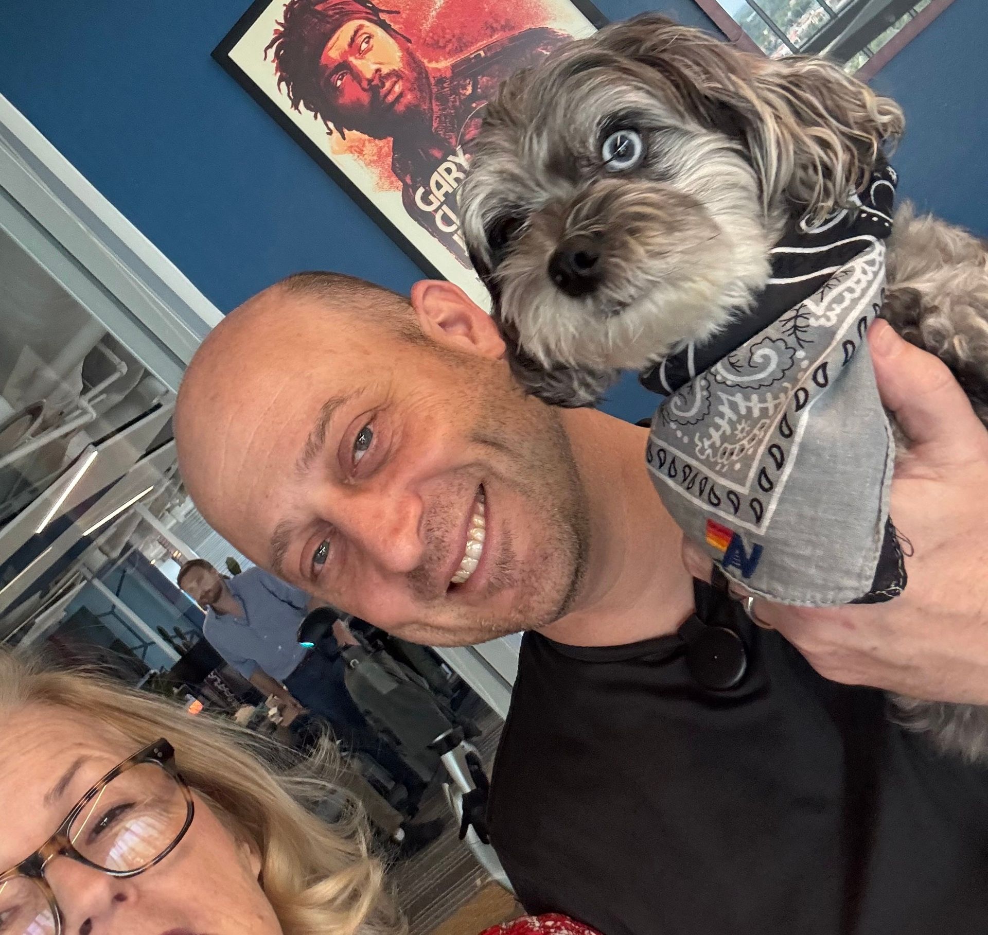 Jeannie E. with Josh Baer, founder and CEO of Capital Factory, who never goes anywhere without his adorable service dog.