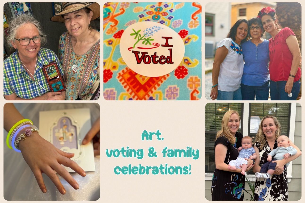 Busy, but fun weekend! Hope everyone was able to vote. I went to an Art Walk in Fayetteville over the weekend, and bought pieces from two fantastic local women artists. And I was grateful to be invited to two joyful family celebrations, followed by a friend’s Cinco de Mayo fiesta!