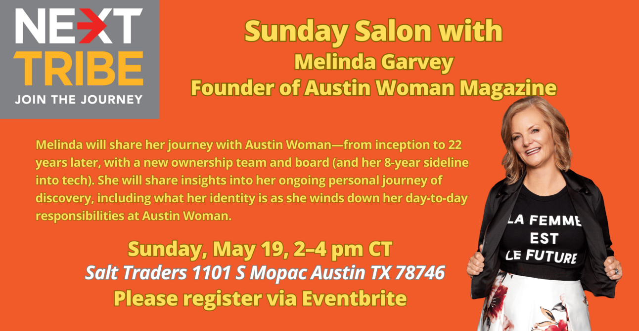Melinda is a serial entrepreneur, founding her first company, Austin Woman magazine, 22 years ago and then just recently executing a successful and unprecedented organizational restructure to bring on seven additional diverse female owners as partners. She is also the founder of On The Dot, a software platform for virtual communities. Melinda serves on the board of Habitat for Humanity Austin and is leading their Women Build giving initiative. Thanks to Nancy Goedeke for facilitating the Sunday Salon series.