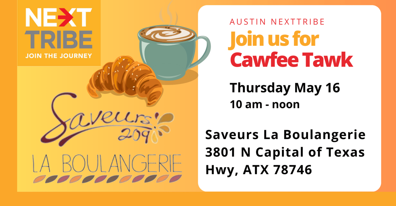As I transition my position into managing other local communities for NextTribe, I wanted to give you a heads up. In a few weeks we’ll be rolling the Austin weekly email into a Members email that you’ll get on Tuesdays. I’ll continue to post our upcoming events within the email, and of course we’ll keep our Austin Members Facebook Group too. Jennifer Miller is now managing Tribe Social, so you’ll likely see more Austin information on that platform as well. AND…we’ve been promised a new member dashboard, so folks will be able to check their membership status, payment updates anytime. Onward through the fog!