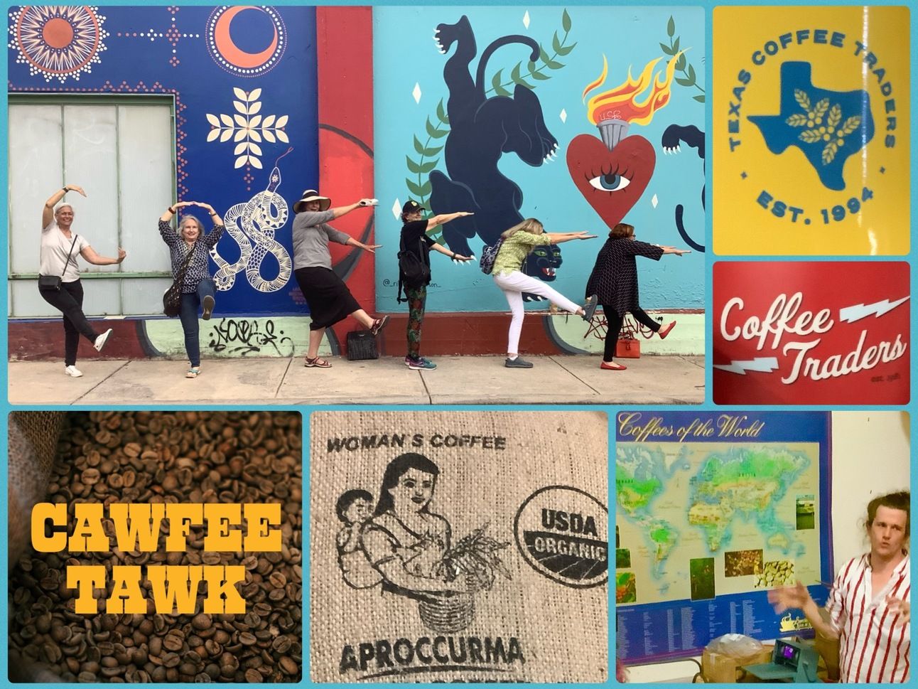 For last week’s Cawfee Tawk we had another East Side adventure. Some of us took the train again (still, problems with ticketing…come on, Cap Metro! Do better!) We had a great tour of one of Austin’s oldest and largest wholesale coffee roasters, Texas Coffee Traders an institution in Austin for 30 years. Gotta love a cute, tall tour guide with a messy man bun! Thanks to Sherry Cordry for setting it up. The free coffee drinks were a nice morning surprise!