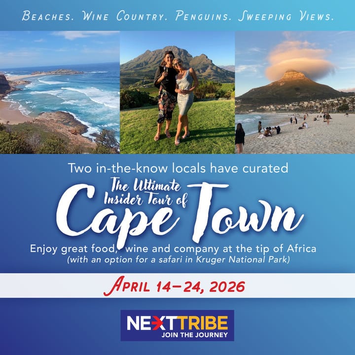 Experience South Africa like a local. Meet the two women who will introduce us to secret spots and their fabulous friends at our South Africa Trip Preview, Wed. April 30th, 1 pm CT. (Must be midday because of the time difference in Capetown.) RSVP here.